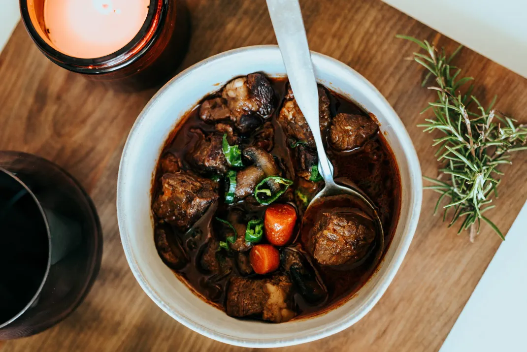 Laat het stoofvlees een minimaal 2 uur sudderen op laag vuur tot het vlees uit elkaar valt. Zodra de saus de gewenste dikte heeft, plaats je het deksel op de pan.